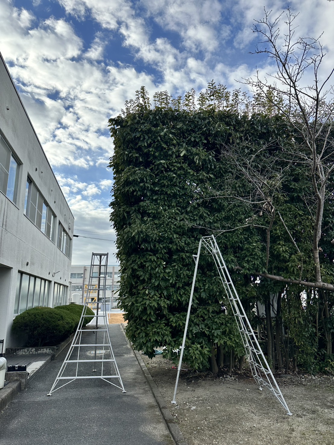 こちらの剪定を行うのですが高所作業車での作業となり、車両の都合上明日完成になります💦